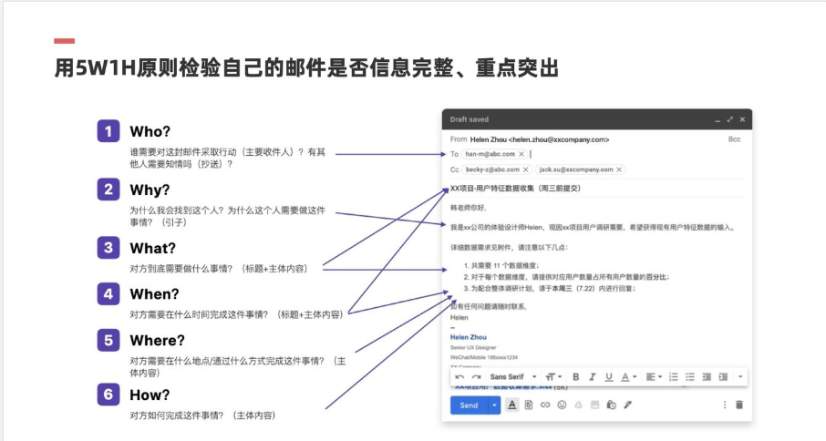用 5W1H 原则检验自己的邮件是否信息完整、重点突出